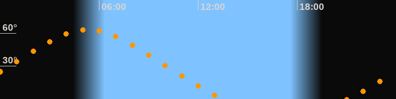 Höchster Stand (Kulmination)05:18 Uhr (h = 63,4°)