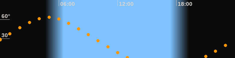 Höchster Stand (Kulmination)04:55 Uhr (h = 63,4°)