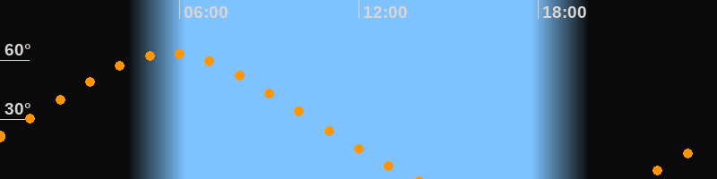 Höchster Stand (Kulmination)05:40 Uhr (h = 63,4°)