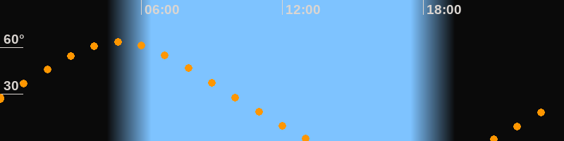 Höchster Stand (Kulmination)05:02 Uhr (h = 63,4°)