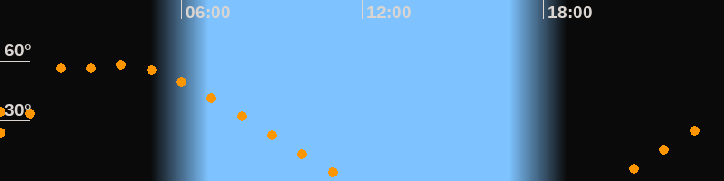 | Untergang | 11:35 Uhr im Nordwesten (αAz = 301,2°) |