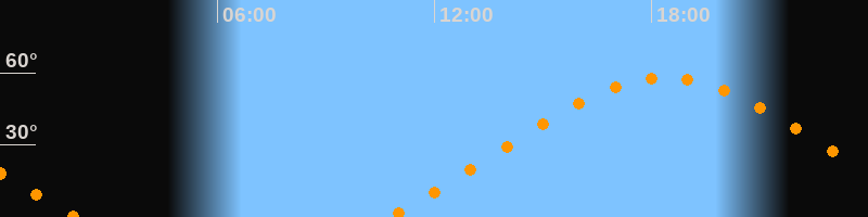 | Höchster Stand (Kulmination) | 18:24 Uhr (h = 57,9°) |
