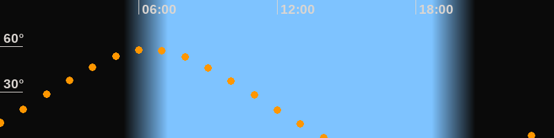| Höchster Stand (Kulmination) | 06:28 Uhr (h = 57,9°) |