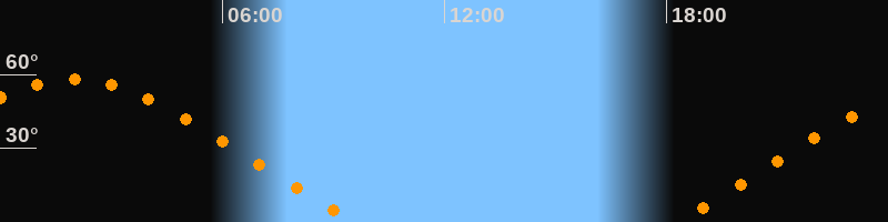 | Aufgang | 18:13 Uhr im Nordosten (αAz = 58,8°) |