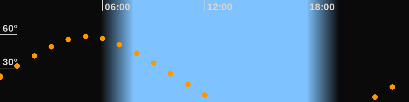 | Aufgang | 21:24 Uhr im Nordosten (αAz = 58,8°) |