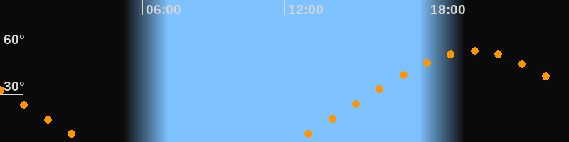 | Aufgang | 12:16 Uhr im Nordosten (αAz = 58,8°) |