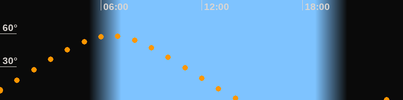 | Höchster Stand (Kulmination) | 06:36 Uhr (h = 57,9°) |