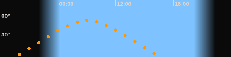 | Höchster Stand (Kulmination) | 09:03 Uhr (h = 57,9°) |