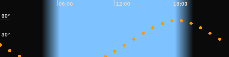 | Höchster Stand (Kulmination) | 18:30 Uhr (h = 57,9°) |