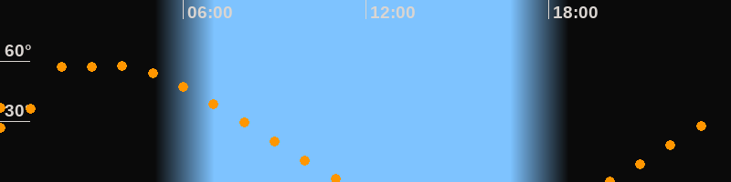 | Untergang | 11:18 Uhr im Nordwesten (αAz = 301,2°) |