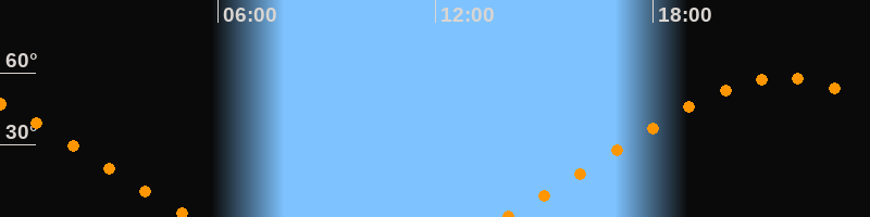 | Untergang | 05:18 Uhr im Nordwesten (αAz = 301,2°) |
