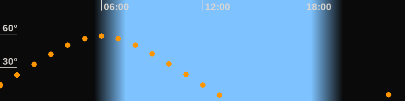 | Höchster Stand (Kulmination) | 06:00 Uhr (h = 57,9°) |