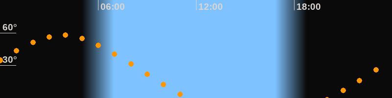 | Untergang | 11:30 Uhr im Nordwesten (αAz = 301,2°) |