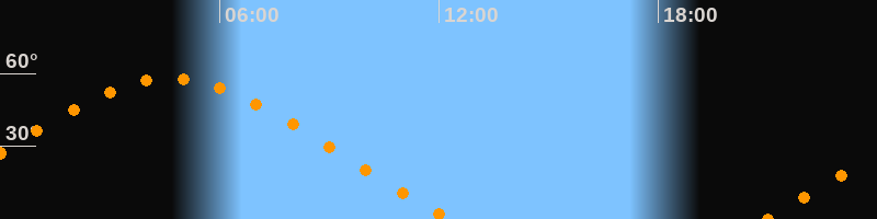 | Untergang | 12:19 Uhr im Nordwesten (αAz = 301,2°) |