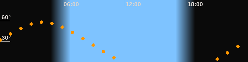 | Aufgang | 20:22 Uhr im Nordosten (αAz = 58,8°) |