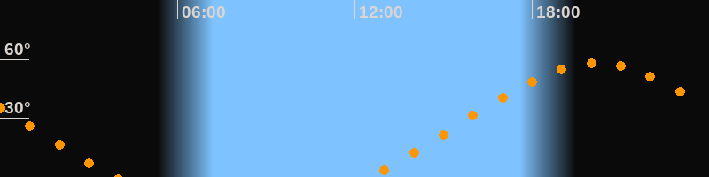 | Aufgang | 12:31 Uhr im Nordosten (αAz = 58,8°) |