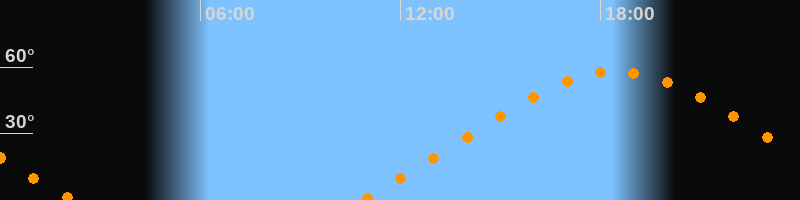 | Höchster Stand (Kulmination) | 18:29 Uhr (h = 57,9°) |
