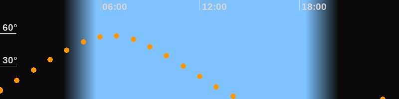 | Höchster Stand (Kulmination) | 06:41 Uhr (h = 57,9°) |