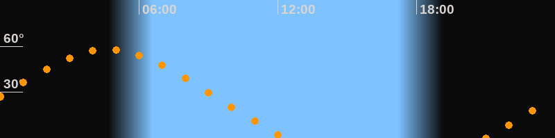 | Untergang | 12:20 Uhr im Nordwesten (αAz = 301,2°) |