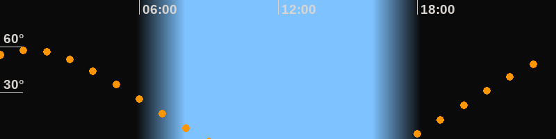 | Aufgang | 17:30 Uhr im Nordosten (αAz = 58,8°) |