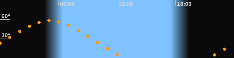 | Höchster Stand (Kulmination) | 05:05 Uhr (h = 57,9°) |