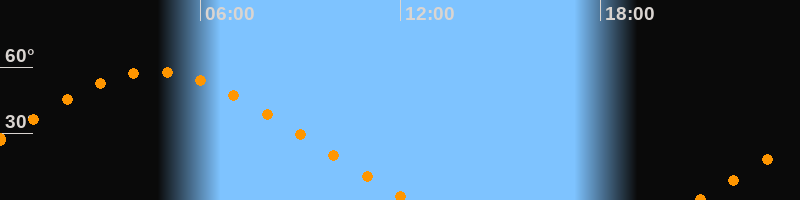 | Untergang | 12:18 Uhr im Nordwesten (αAz = 301,2°) |