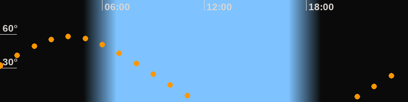 | Untergang | 11:46 Uhr im Nordwesten (αAz = 301,2°) |