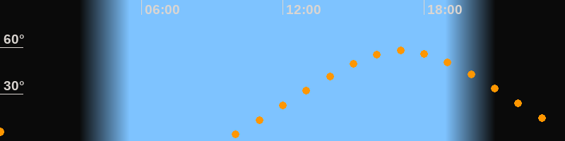 | Aufgang | 09:23 Uhr im Nordosten (αAz = 58,8°) |