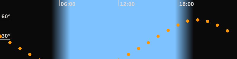 Höchster Stand (Kulmination)19:58 Uhr (h = 59,9°)