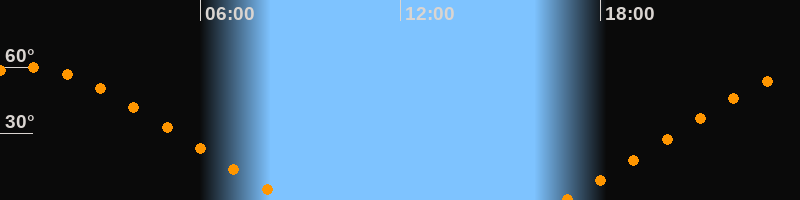 Höchster Stand (Kulmination)00:43 Uhr (h = 59,9°)
