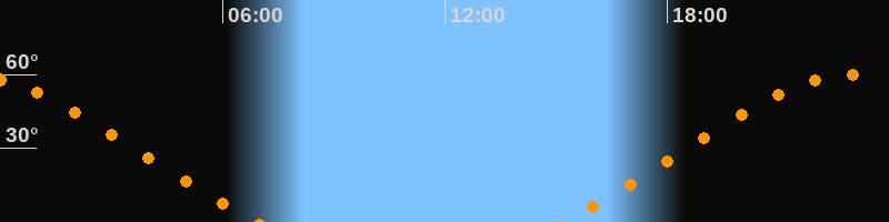 Höchster Stand (Kulmination)23:01 Uhr (h = 59,9°)
