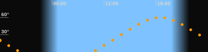 Höchster Stand (Kulmination)18:27 Uhr (h = 59,9°)