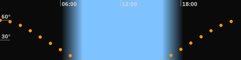 Höchster Stand (Kulmination)23:57 Uhr (h = 59,9°)
