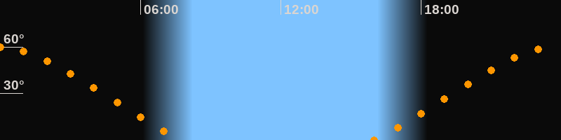 Höchster Stand (Kulmination)23:49 Uhr (h = 59,9°)