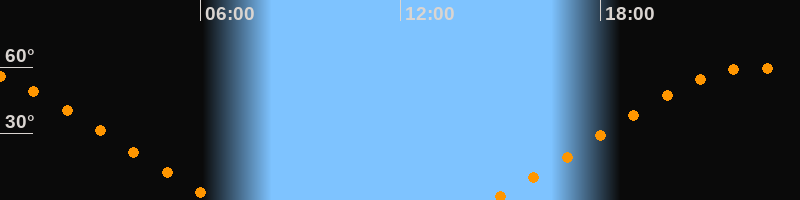 Höchster Stand (Kulmination)22:35 Uhr (h = 59,9°)
