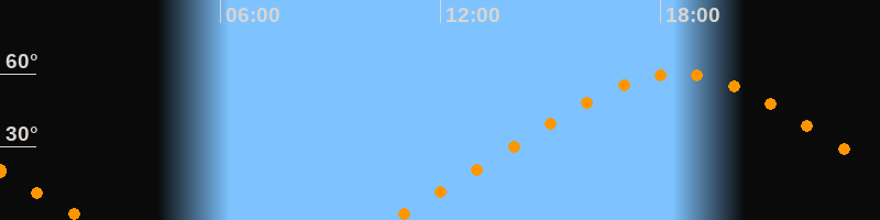 Höchster Stand (Kulmination)18:27 Uhr (h = 59,9°)