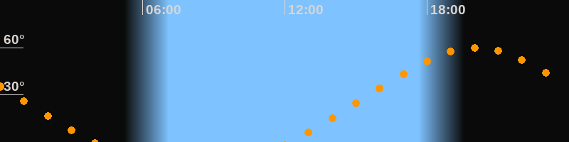 Höchster Stand (Kulmination)20:02 Uhr (h = 59,9°)