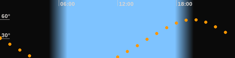 Höchster Stand (Kulmination)19:35 Uhr (h = 59,9°)