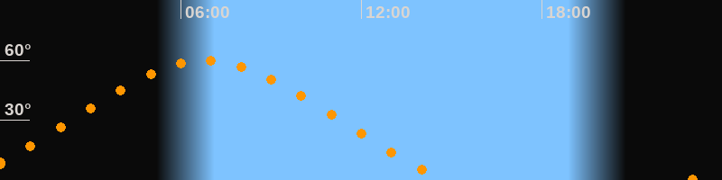 Höchster Stand (Kulmination)06:49 Uhr (h = 59,9°)