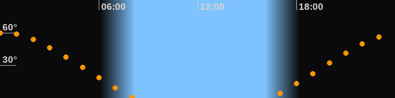 Höchster Stand (Kulmination)00:15 Uhr (h = 59,9°)