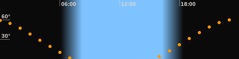 Höchster Stand (Kulmination)23:20 Uhr (h = 59,9°)