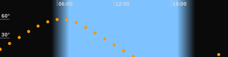 Höchster Stand (Kulmination)06:23 Uhr (h = 59,9°)