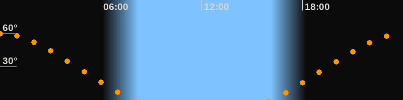 Höchster Stand (Kulmination)00:00 Uhr (h = 59,9°)