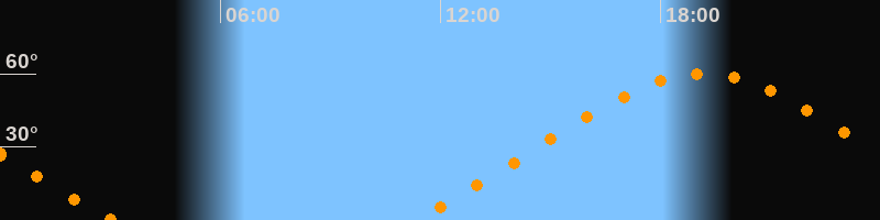 Höchster Stand (Kulmination)19:09 Uhr (h = 59,9°)