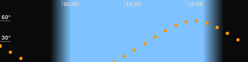 Höchster Stand (Kulmination)18:47 Uhr (h = 59,9°)
