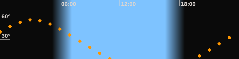Höchster Stand (Kulmination)03:16 Uhr (h = 59,9°)
