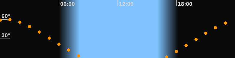 Höchster Stand (Kulmination)00:34 Uhr (h = 59,9°)