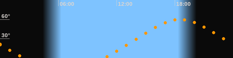 Höchster Stand (Kulmination)18:33 Uhr (h = 59,9°)