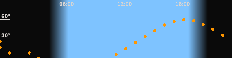 Höchster Stand (Kulmination)19:05 Uhr (h = 59,9°)