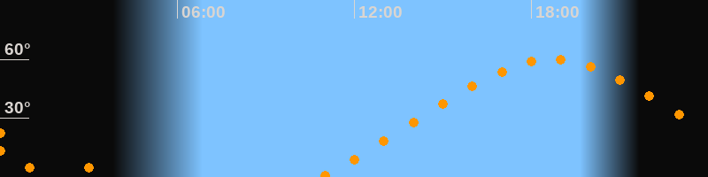 Höchster Stand (Kulmination)18:43 Uhr (h = 59,9°)